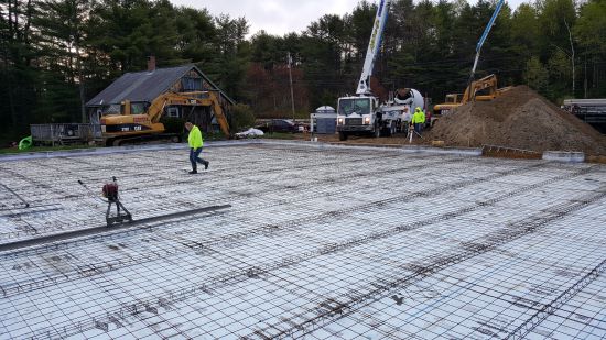 I was hired by Lajoie Bros. Inc to place and finish the concrete floor. We had to pump the concrete, which made the pour pretty easy.