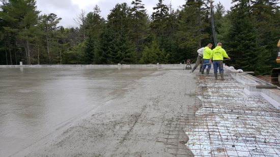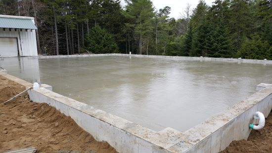 Here's the concrete floor all poured in place. We install concrete floors in Brunswick, Freeport, Yarmouth, Cumberland, and Falmouth, Me.